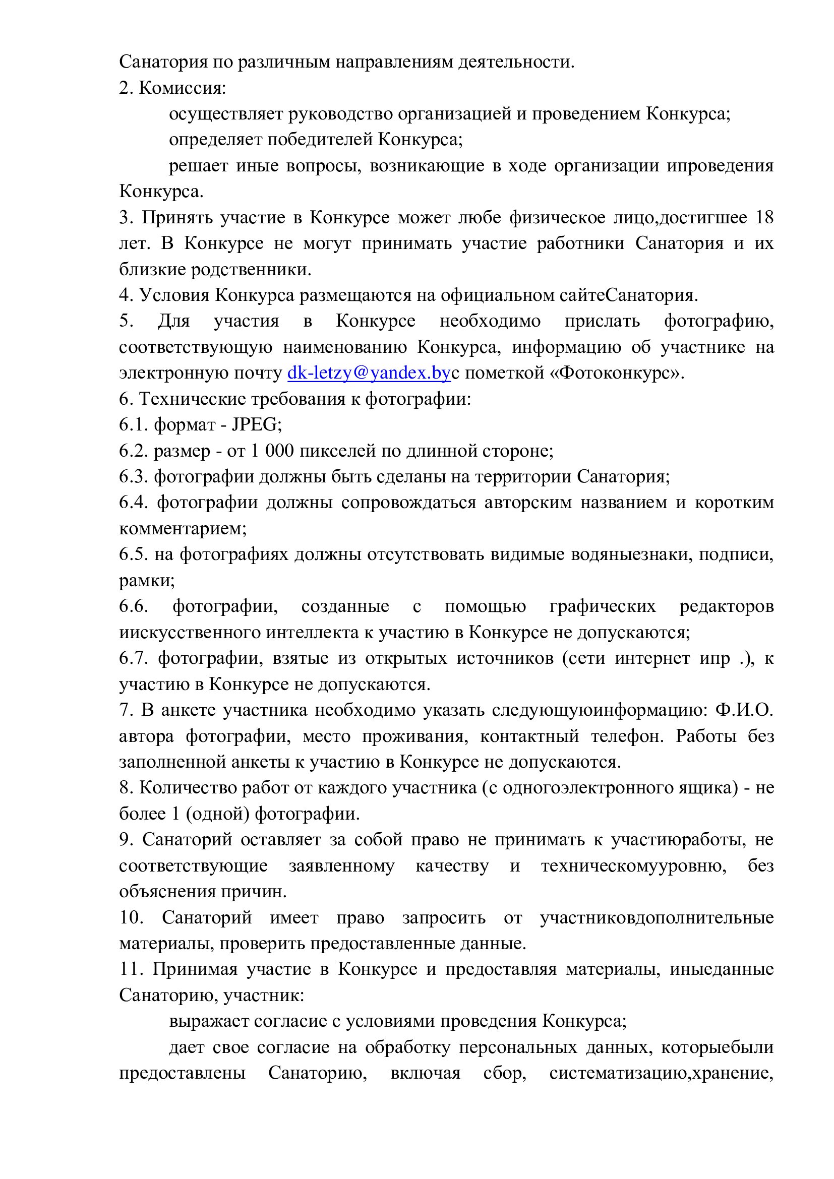 - Для участия в конкурсе необходимо прислать одну фотографию, соответствующую наименованию конкурса, информацию об участнике на электронную почту dk-letzy@yandex.by с пометкой «Фотоконкурс».